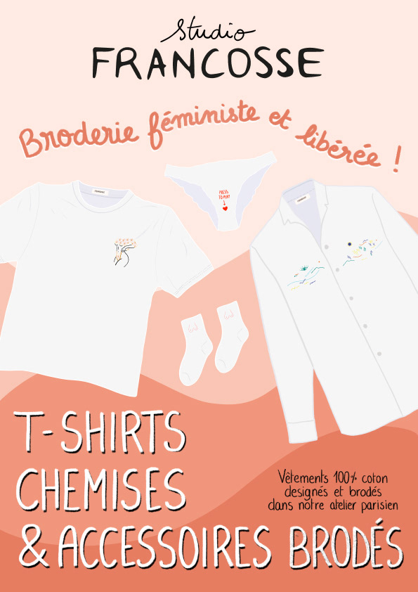 Studio Francosse est une marque parisienne de broderie impertinente et libérée. Jeanne, la fondatrice, à créé sa marque seule et a dû gérer plusieurs compétences en même temps pour lancer sa boutique. Elle souhaitait renforcer son identité visuelle afin de pouvoir la décliner facilement sur tous les supports.